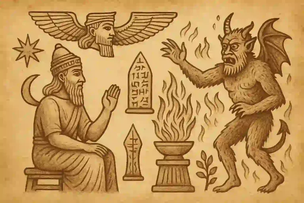 Mezopotamya uygarlıkları (Sümér, Akad, Babil), zihinsel rahatsızlıkların kökenini çoğunlukla doğaüstü güclere bağlamışlardı. Ruhsal hastalıklar, tanrıların gazabının ya da kötü ruhların etkisinin bir sonucu olarak görülüyordu (Kramer, 1981).