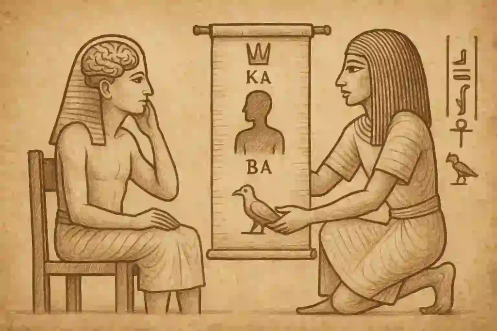 Antik Mısır’da ruh ve beden arasındaki bağ belirginleşmiştir. “Ka” (yaşam gücü) ve “Ba” (kişilik) kavramları, bireyin psikolojik yapısına dair erken teorilerdir (Assmann, 2001).