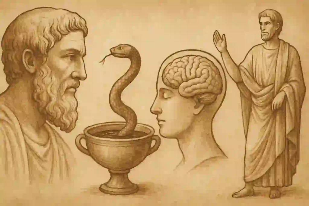 Hipokrat, zihinsel hastalıkların doğaüstü değil, fizyolojik nedenlere dayandığını ileri sürmüştür. İnsan bedeninde bulunduğuna inanılan dört sıvının (kan, balgam, sarı safra, kara safra) dengesizliğinin ruhsal rahatsızlıklara yol açtığını savunmuştur (Nutton, 2004).